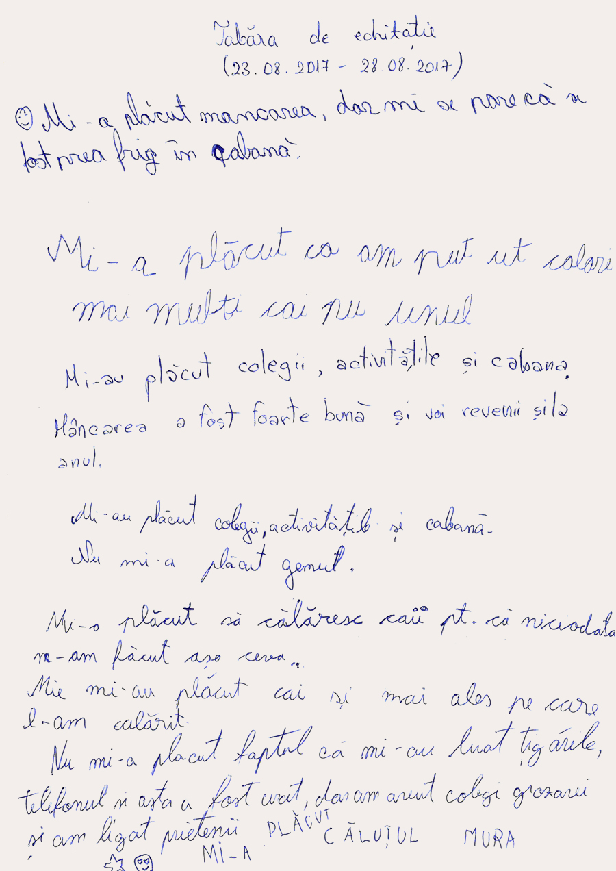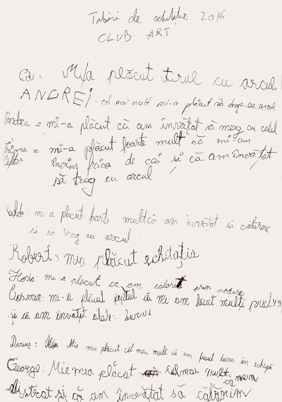 Sosirea în tabără la Cabana Farkas va fi între orele 17:30 – 18:00. După ce toți participanții au sosit luăm cina la ora 18:00. Prima după-amiază a taberei este pentru a face cunoștință, pentru jocuri de formare și de dezvoltare a echipei. În zilele următoare o să avem programe de echitație și de tir cu arcul, condimentate bineînțeles cu bălăceală și jocuri tematice. Seară de seară protagonistul principal o să fie jocul și voia bună. Programele de după-masă includ vizitarea cascadei sau a altor obiective turistice. La fel, în funcție de vreme, în ultima seară a taberei o să punem cireașa pe tort cu un foc de tabără ce ajunge până la cer, cu muzică și dans. În ultima zi dimineața o să facem o evaluare a activităților din tabără, împachetăm și ne luăm rămas bun. Părinții sunt așteptați la Cabana Farkas între orele 14:00 – 15:00 pentru a-i lua pe copii.