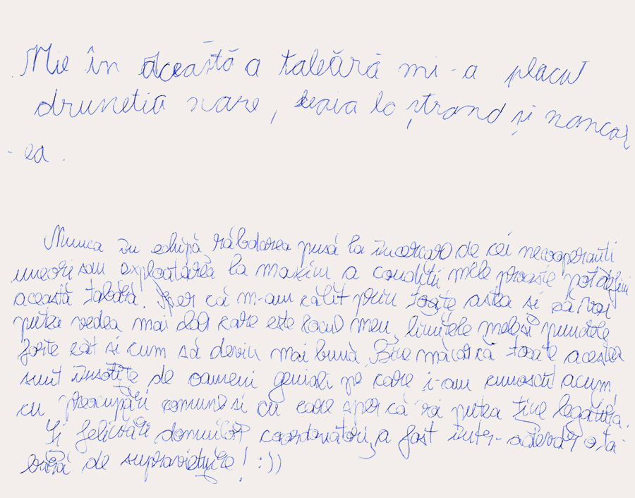 - Amintiri de neuitat: Copilul dumneavoastră se va întoarce acasă cu o mulțime de povești captivante, noi prietenii și amintiri care îi vor îmbogăți copilăria și îl vor pregăti pentru viitor.